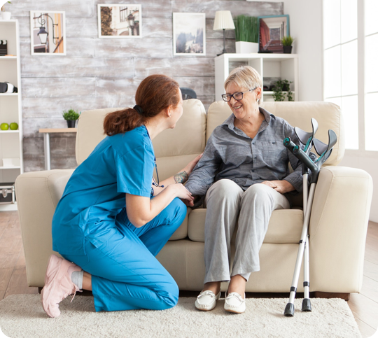 A nurse conducts an assessment for each client to determine what services are needed, and to identify risks in the home.
